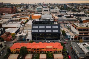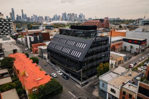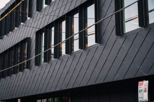 The Decjuba Head Office, designed by Jackson Clements Burrows, is a striking five-storey building located in Cremorne, Melbourne. Featuring UniCote Coastal cladding with a sophisticated Midnight Matt finish, the design utilizes a flatlock/shingles profile that enhances its modern aesthetic. The building prioritizes sustainability, incorporating a hybrid structure of concrete and cross-laminated timber (CLT), which contributes to its energy efficiency and lower carbon footprint. Built by Figurehead Construction, the office includes flexible workspaces, meeting areas, and a ground-floor café, creating an inviting environment for collaboration. Photographed by Brett Boardman, the Decjuba Head Office embodies the brand's commitment to innovative design and environmental responsibility.