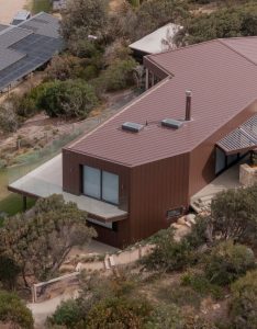 The corten-inspired finish grounds the home visually, reinforcing its connection to the earth. Standing seam cladding introduces rhythm and refinement, balancing rawness with precision. The result is a building that feels both rugged and resolved.