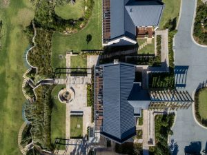 The Oaks Luxury Farmstay is an exquisite retreat designed by Manosa & Co, showcasing a harmonious blend of luxury and nature. The estate features VMZINC® roofing in a standing seam profile. The elegant Anthra-Zinc finish makes a stunning contrast against the "washed" stone exterior which envelopes each building. Built by Horizon Built and installed by Sterland Roofing, the farmstay is thoughtfully integrated into its picturesque surroundings, offering guests a serene escape. Captured beautifully by Brett Boardman Photography, the design emphasizes sustainability and modern comfort, making it a standout destination for relaxation in the countryside.
